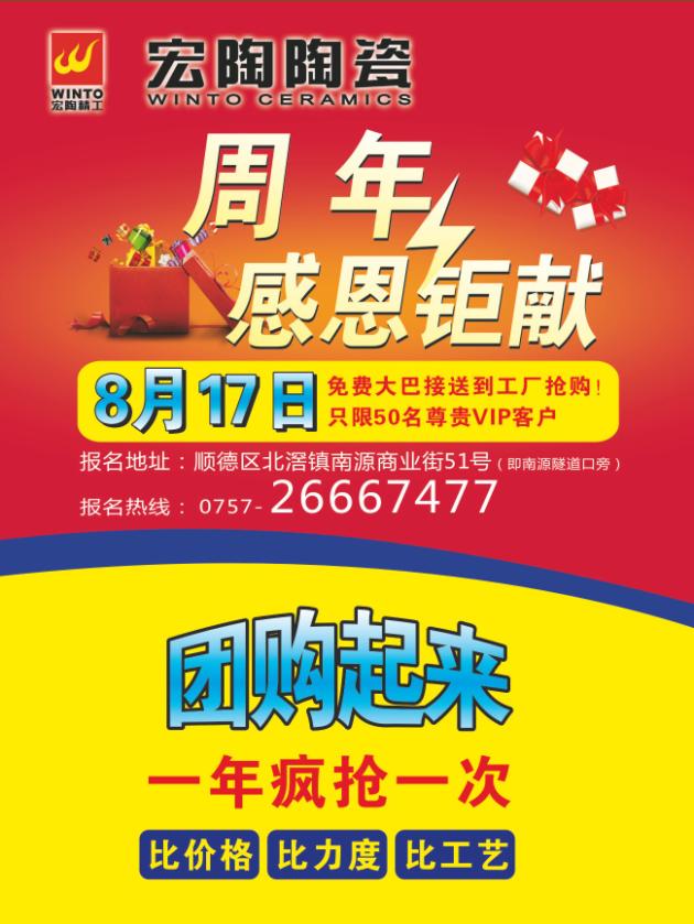 8月17日,将是佛山顺德、三水业主开心乐购瓷砖的日子。将在这一天,91免费版视频陶瓷佛山顺德、三水经销商强强联手,在中国瓷砖十大品牌91免费版视频陶瓷营销中心总部展厅举行一次强大力度的 “总裁签售· 实惠多多”团购活动。
