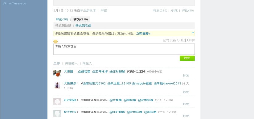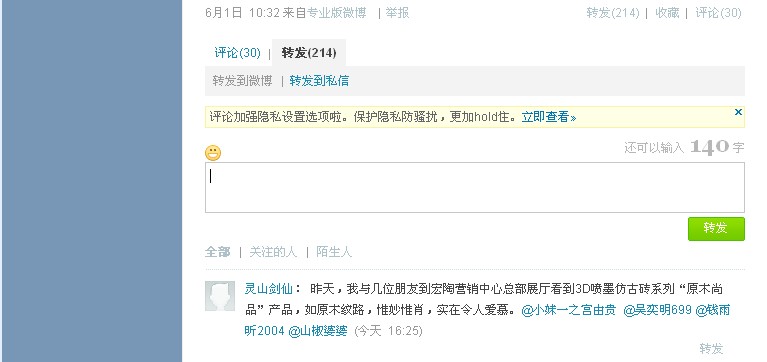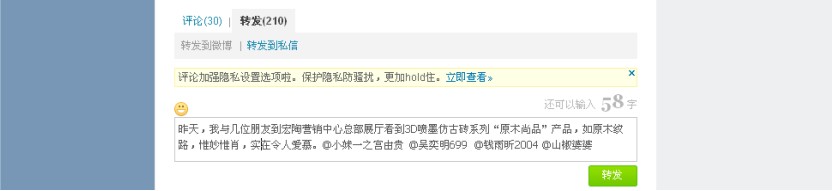 按钮,出现下面微博转发的界面: